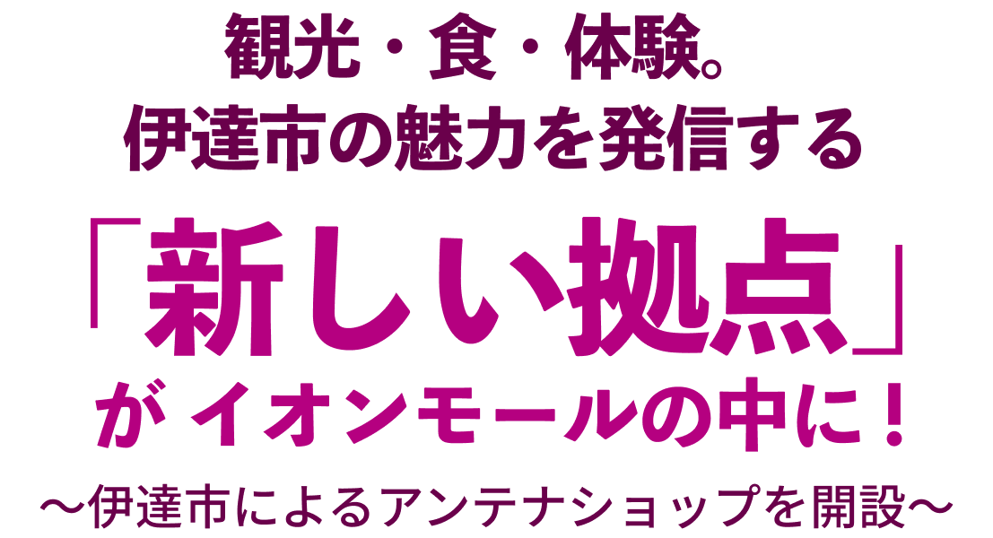 イオンモール伊達では、伊達市をはじめ近隣市町村と連携し、地域資産や魅力を再発見し、地域と連携し文化や資源を磨き発信する場、そして多世代で楽しめる憩いの場を、地域の皆さまと共創してまいります。